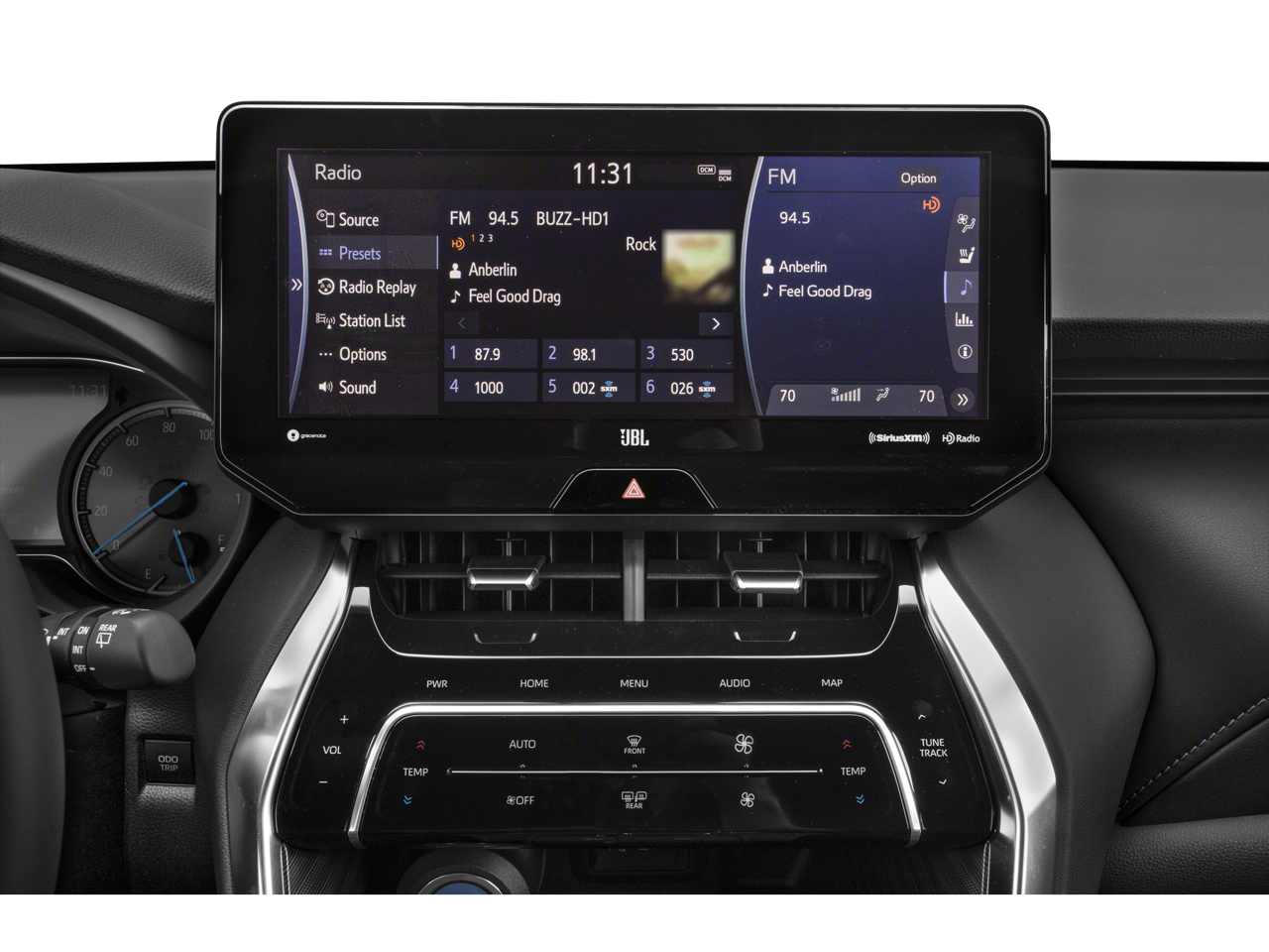 - Radio: Premium Audio w/Dynamic Navigation & JBL -inc: 12.3" touchscreen w/Intelligent Touch capacitive controls, AM/FM/HD Radio, 9 speakers w/subwoofer and amplifier, 1 USB and 1 AUX media port, 3 additional USB charge ports, Dynamic POI Search, Dynamic Voice Recognition, hands-free phone capability and music streaming via Bluetooth® wireless technology, Android Auto, Apple CarPlay and Amazon Alexa compatible, SiriusXM w/3-month All Access trial, Connected Services - Safety Connect w/1-year trial, Service Connect w/10-year trial, Remote Connect w/1-year trial, Wi-Fi Connect w/up to 2 GB within 3-month trial and Destination Assist w/1-year trial, See toyota.com/audio-multimedia and toyota.com/connected-services for details